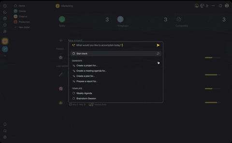 Automate work processes by crafting custom AI-generated templates for your teams, thereby streamlining project creation.